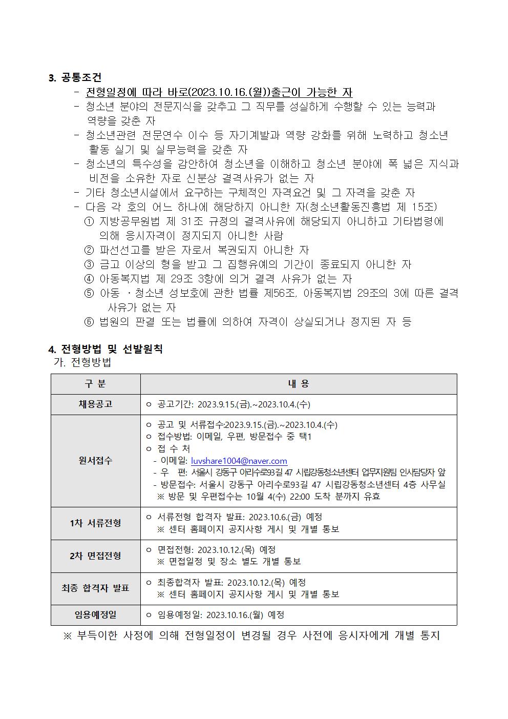 | ½Ã¸³°µ¿Ã»¼Ò³â¼¾ÅÍ Ã»¼Ò³â»ç¾÷ Á÷¿øÃ¤¿ë °ø°í(~10/4±îÁö) | |||
