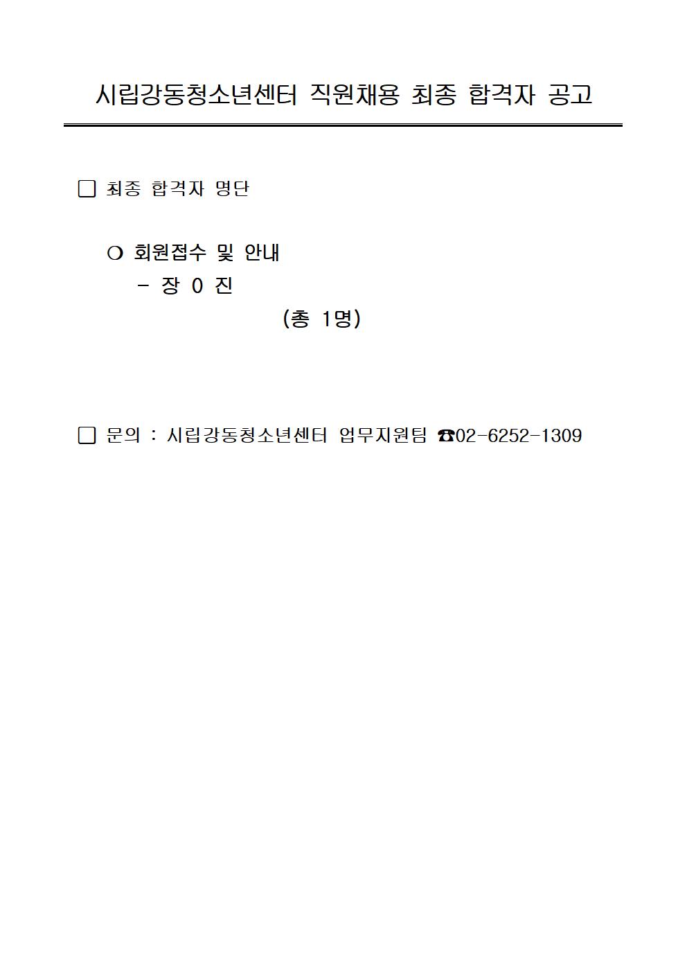 | ½Ã¸³°µ¿Ã»¼Ò³â¼¾ÅÍ Á÷¿ø ä¿ë ÃÖÁ¾ ÇÕ°ÝÀÚ °ø°í | |||