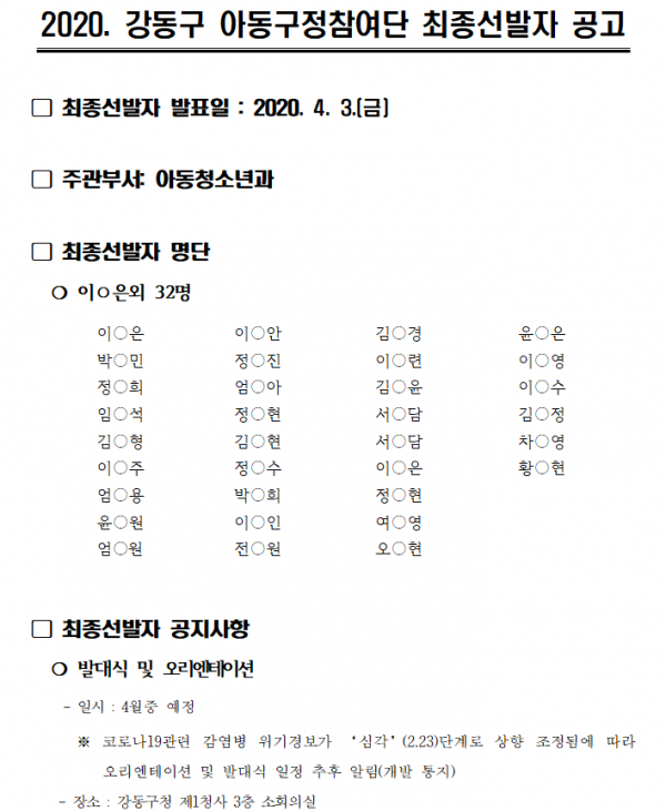 | Á¦5±â °µ¿±¸ ¾Æµ¿±¸Á¤Âü¿©´Ü ÃÖÁ¾¼±¹ßÀÚ °ø°í | |||