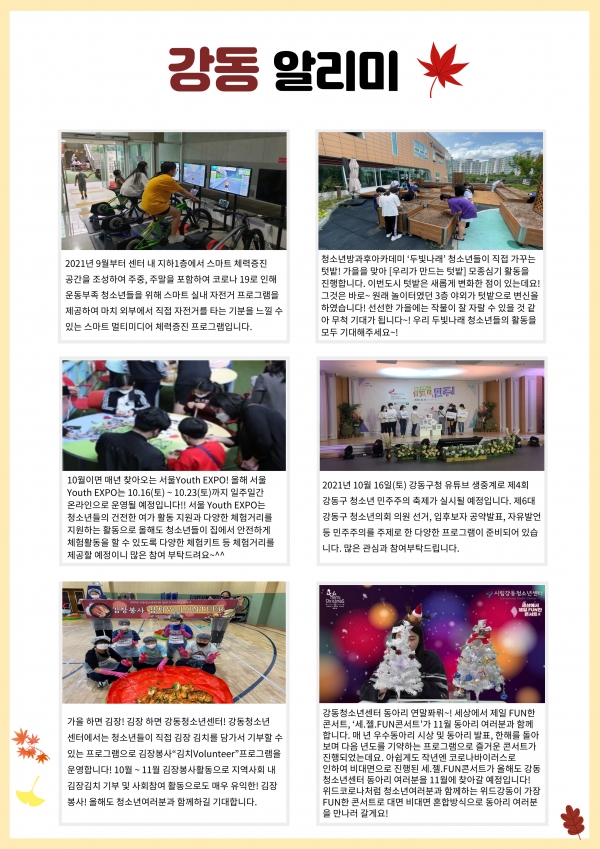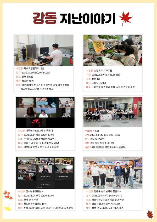 | ÀÛ¼ºÀÚ : ½Ã¸³°µ¿Ã»¼Ò³â¼¾ÅÍ(wagle1300@daum.net) ÀÛ¼ºÀÏ : 2021-09-30 Á¶È¸¼ö : 6290 | |||