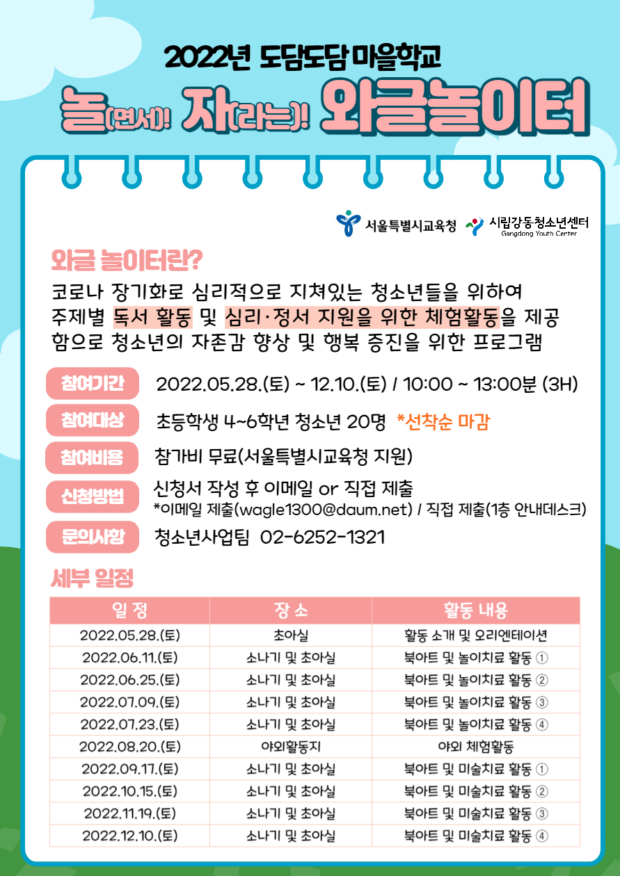 | 2022³â µµ´ãµµ´ã ¸¶À»Çб³ "³î!ÀÚ! ¿Í±Û³îÀÌÅÍ" ÇÁ·Î±×·¥ ¾È³» | |||