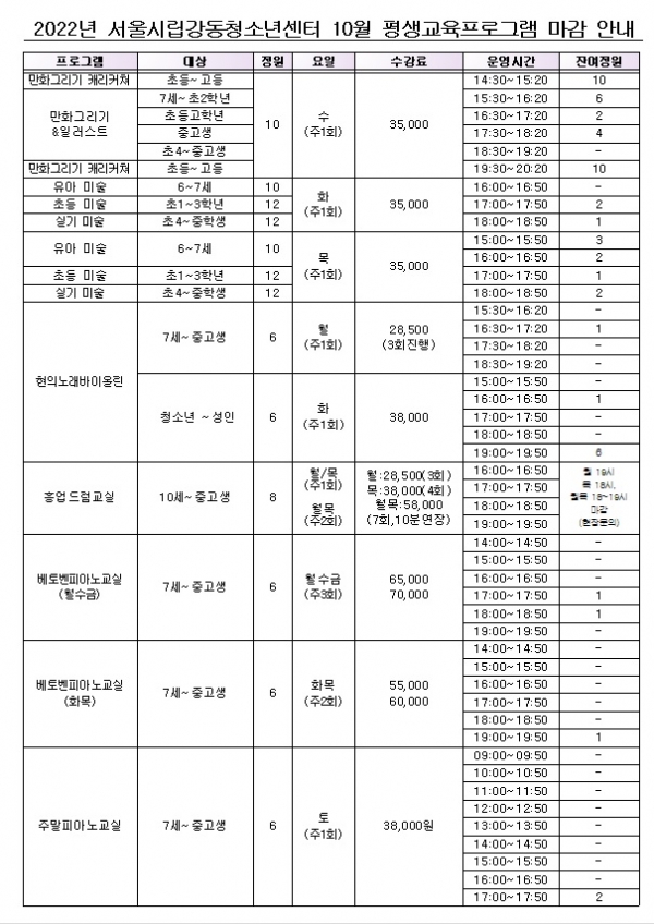 2022³â 10¿ù Æò»ý±³À°ÇÁ·Î±×·¥ ¸¶°¨ÇöȲ (2022.09.24.16:00 ±âÁØ)