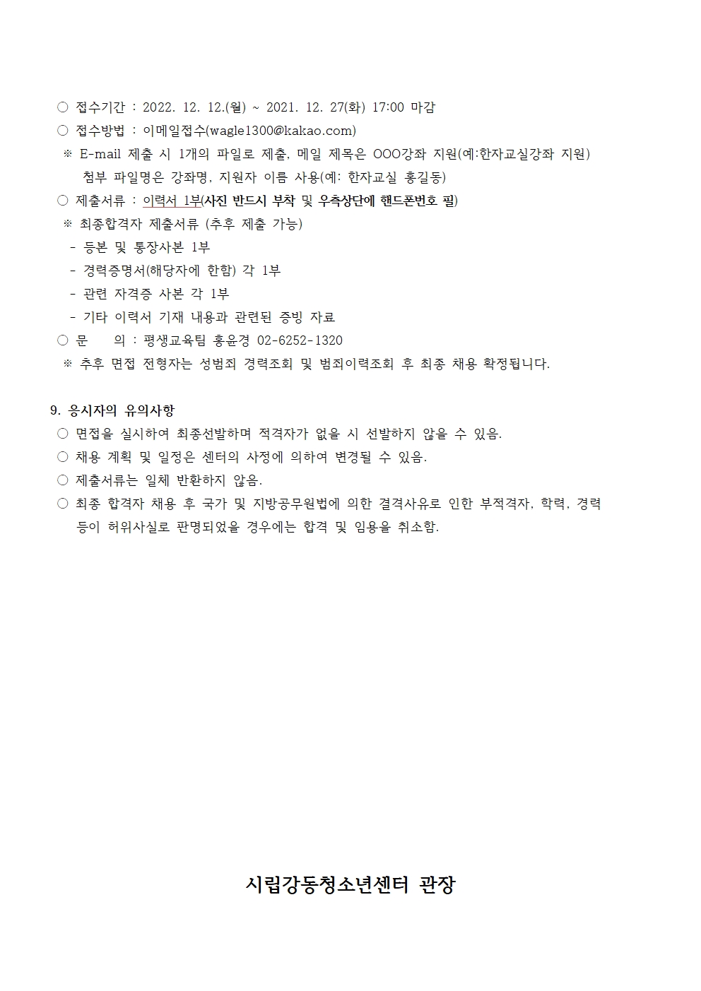 | ÀÛ¼ºÀÚ : ½Ã¸³°µ¿Ã»¼Ò³â¼¾ÅÍ(wagle1300@daum.net) ÀÛ¼ºÀÏ : 2022-12-14 Á¶È¸¼ö : 3121 | |||