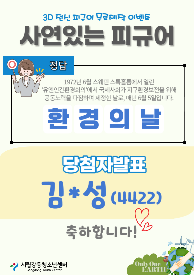 | 2023³â 6¿ù '»ç¿¬ÀÖ´Â ÇDZԾî' ¹«·áÁ¦ÀÛ <ȯ°æ Ãʼº ÄûÁî À̺¥Æ®2> ´ç÷ÀÚ ¹ßÇ¥ | |||