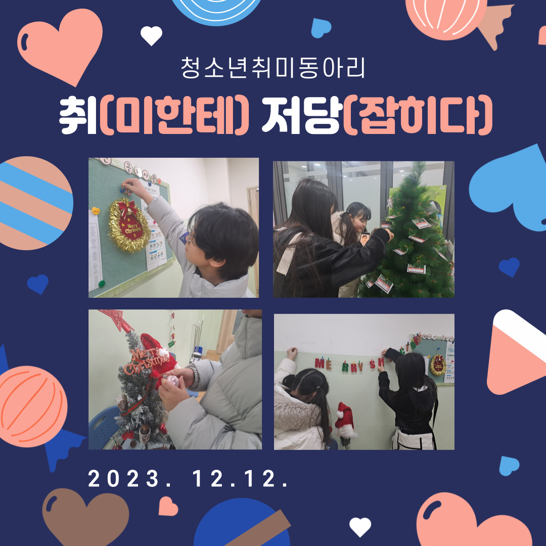 | 2023³â û¼Ò³âÃë¹Ìµ¿¾Æ¸® 'Ãë(¹ÌÇÑÅ×) Àú´ç(ÀâÈ÷´Ù) 12¿ù Ȱµ¿ [Áñ°Å¿î Å©¸®½º¸¶½º¿Í »õÇØ ¼Ò¿ø ºô±â] | |||