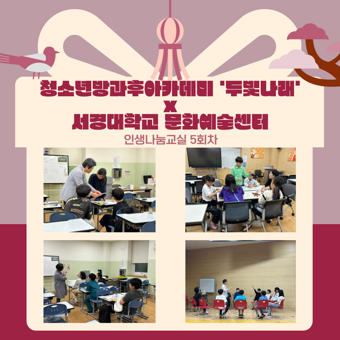 | ½Ã¸³°µ¿Ã»¼Ò³â¼¾ÅÍ 2024³â û¼Ò³â¹æ°úÈľÆÄ«µ¥¹Ì µÎºû³ª·¡ ¼°æ´ëÇб³ ¹®È¿¹¼ú¼¾ÅÍ ¿¬°è Àλý³ª´®±³½Ç 5ȸÂ÷ | |||