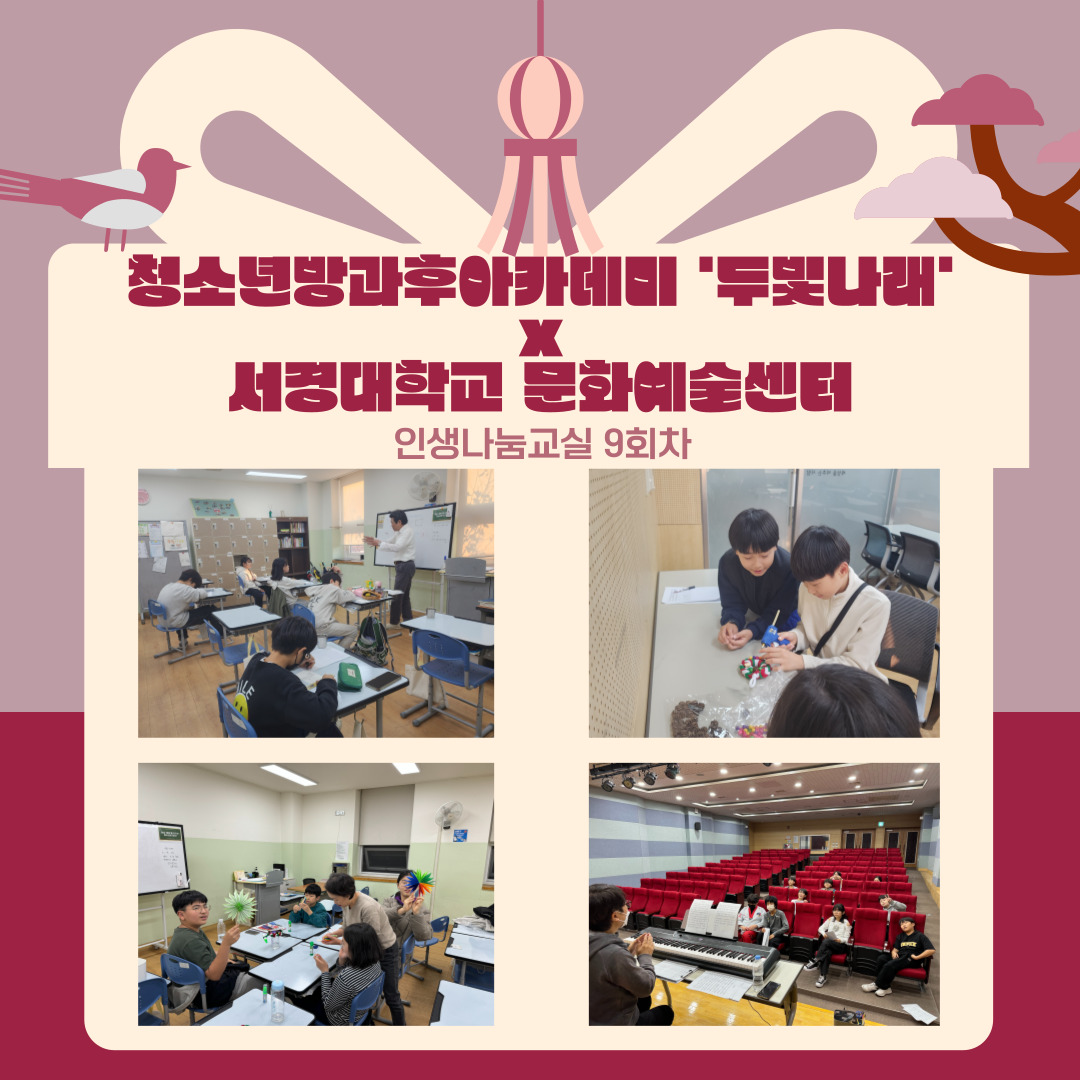 | ½Ã¸³°µ¿Ã»¼Ò³â¼¾ÅÍ 2024³â û¼Ò³â¹æ°úÈľÆÄ«µ¥¹Ì µÎºû³ª·¡ ¼°æ´ëÇб³ ¹®È¿¹¼ú¼¾ÅÍ ¿¬°è Àλý³ª´®±³½Ç 9ȸÂ÷ | |||