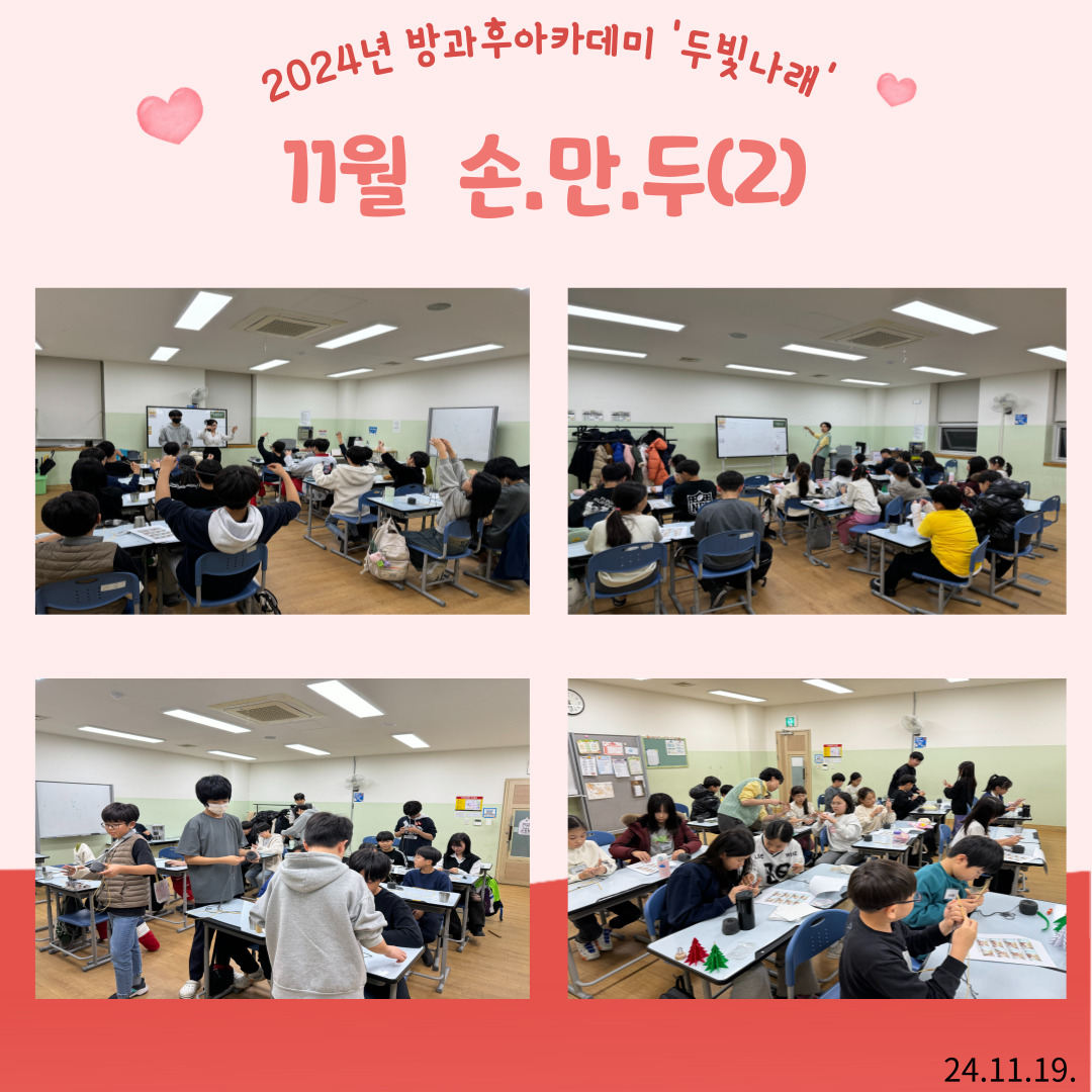 | ½Ã¸³°µ¿Ã»¼Ò³â¼¾ÅÍ 2024³â û¼Ò³â¹æ°úÈľÆÄ«µ¥¹Ì 'µÎºû³ª·¡' 11¿ù [¼Õ.¸¸.µÎ(2)] Ȱµ¿ | |||