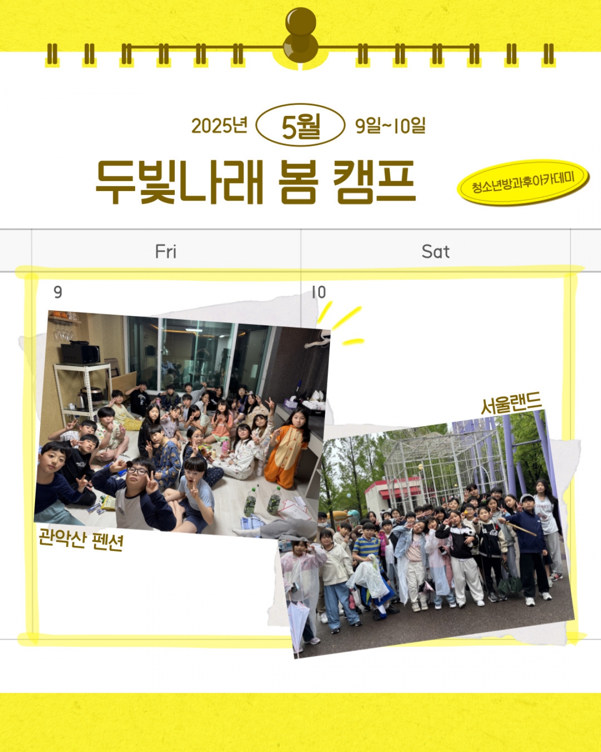 | ÀÌÀü±Û | 2025³â û¼Ò³â¹æ°úÈľÆÄ«µ¥¹Ì µÎºû³ª·¡ 5¿ù 2ÁÖÂ÷ Ȱµ¿ |