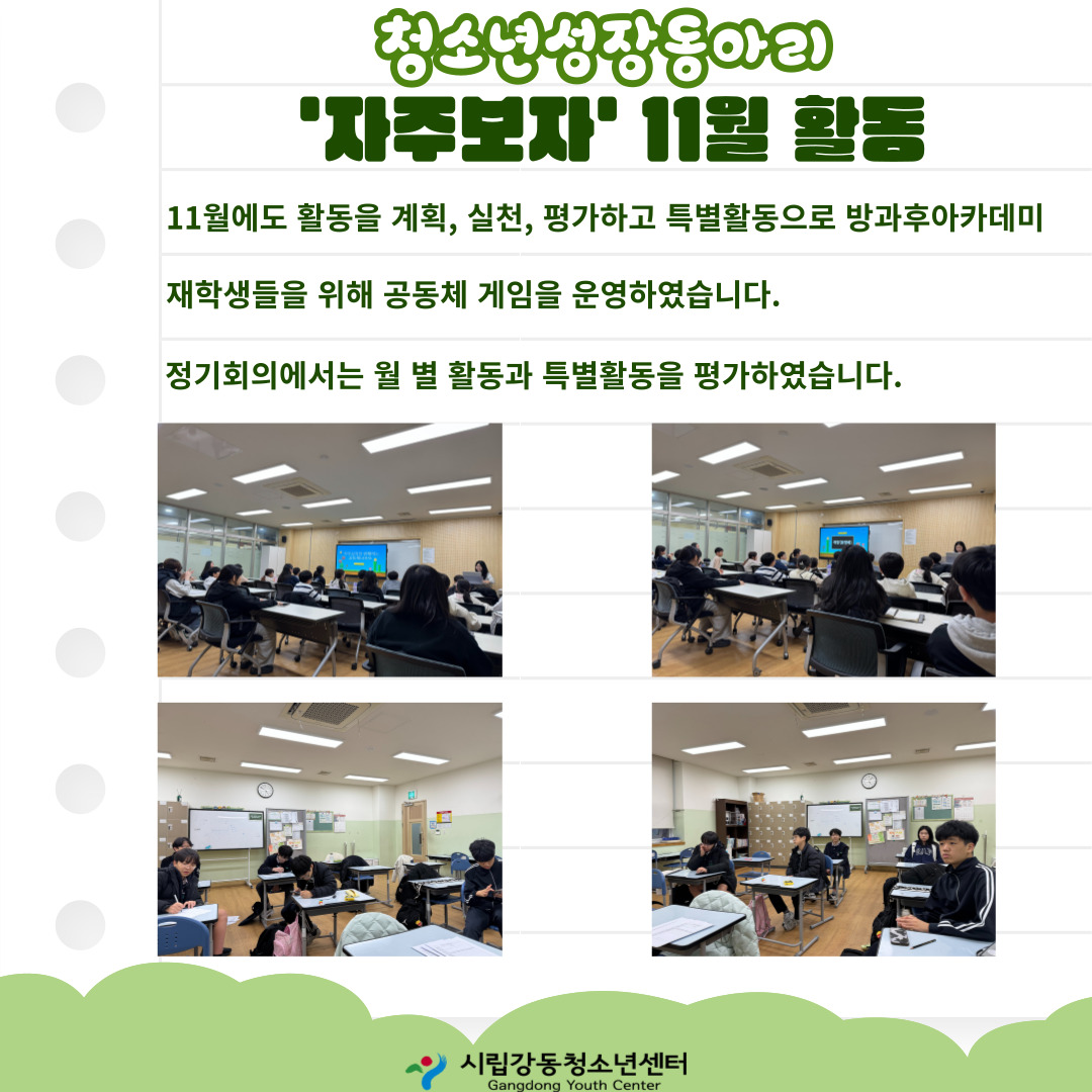 | 2025³â û¼Ò³â¼ºÀ嵿¾Æ¸® 'ÀÚÁÖº¸ÀÚ' 11¿ù Ȱµ¿ | |||