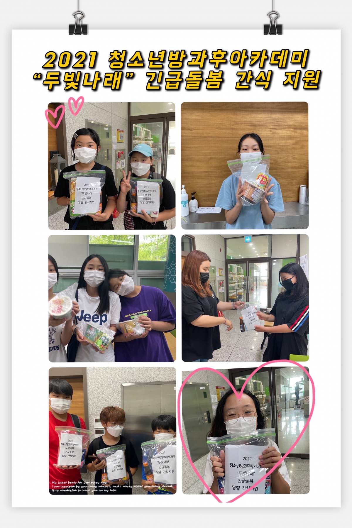 Äڷγª19·Î ÀÎÇÑ µ¹º½ °ø¹éÀ» ÃÖ¼ÒÈÇϱâ À§ÇÏ¿© Á¡½Éµµ½Ã¶ôÀ» Á¦°øÇϰí ÀÖÁö¸¸, û¼Ò³âµéÀÌ ¾ÆÁÖ ÁÁ¾ÆÇÏ´Â ´Þ´ÞÇÑ °£½ÄµéÀ» ÁغñÇÏ¿© Á÷Á¢ Àü´ÞÇØÁÖ¾ú½À´Ï´Ù~!