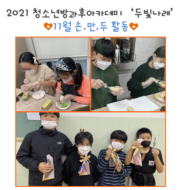 2021 û¼Ò³â¹æ°úÈľÆÄ«µ¥¹Ì ¡®µÎºû³ª·¡¡¯ 11¿ù [¼Õ.¸¸.µÎ]Ȱµ¿À» ÁøÇàÇÏ¿´½À´Ï´Ù~!! ¿ì¸® û¼Ò³â¹æ°úÈľÆÄ«µ¥¹Ì µÎºû³ª·¡ ¸ðµÎÀÇ Ä£±¸µé°ú ÇÔ²² Çϱâ À§ÇØ ´ë¸é°ú ºñ´ë¸éÀ¸·Î ÁøÇàÇÏ¿´´Âµ¥¿ä Áý¿¡¼µµ Áñ°Ì°Ô Âü¿©ÇÒ ¼ö ÀÖ´Â ³ª¸¸ÀÇ À½½Ä ¸¸µé±â Ȱµ¿À¸·Î ÁøÇàÇÏ¿´½À´Ï´Ù~! 11¿ù »©»©·Îµ¥ÀÌ µ¥À̸¦ ¸Â¾Æ »©»©·Î ¸¸µé±â¸¦ ½ÃÀÛÀ¸·Î ¸ÀÀÖ´Â ÁÖ¸Ô¹ä°ú »÷µåÀ§Ä¡ µî ´Ù¾çÇÏ°Ô ¸¸µé¾îº¸´Â ½Ã°£À» °¡Á³½À´Ï´Ù~! ¼¾ÅÍ ¿À´Â Ä£±¸µéÀº ±³½Ç¿¡¼! °¡Á¤µ¹º½ Ä£±¸µéÀº û¼Ò³â °¢ °¡Á¤¿¡¼ ¸¸µé±â¿¡ Âü¿©ÇÒ ¼ö ÀÖµµ·Ï »çÀü¿¡ ŰƮ¸¦ ÁØ ÈÄ °¡Á¤µ¹º½ Ä£±¸µéÀº ¿Â¶óÀÎ ÁÜÀ¸·Î ¸¸³µ½À´Ï´Ù~!! µÎºû³ª·¡ ±âȹ´ÜÀ» ÅëÇØ Ä£±¸µéÀÌ ¸¸µé°í ½Í´Ù°í Çß´ø ³»¿ëÀ¸·Î ÁøÇàÇÏ¿© û¼Ò³âµéÀÌ ´õ¿í Áñ°Ì°Ô ¸¸µé ¼ö ÀÖ¾ú´ø Ȱµ¿ÀÌ µÇ¾ú½À´Ï´Ù 12¿ù ¼Õ¸¸µÎ(¼ÕÀ¸·Î ¸¸µå´Â µÎºû³ª·¡) Ȱµ¿µµ ±â´ëÇØÁÖ¼¼¿ä~¢½ |
