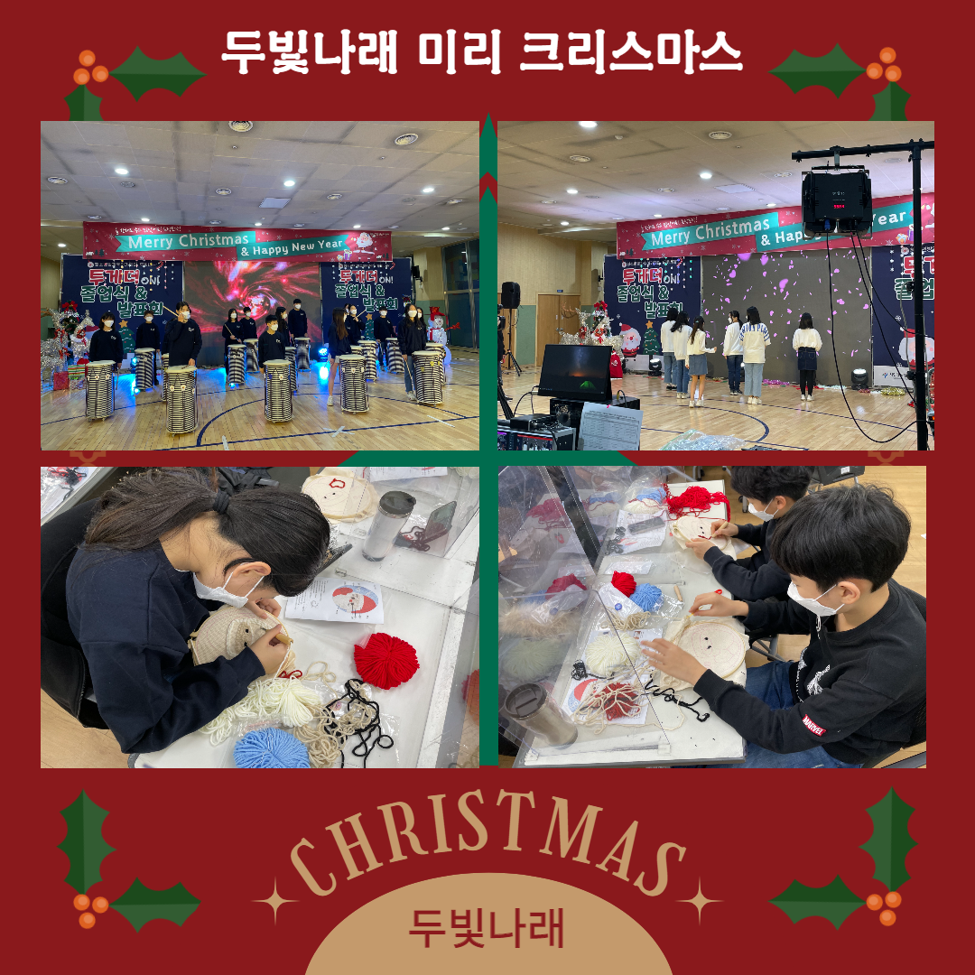 ¾È³çÇϼ¼¿ä! ¹æ°úÈľÆÄ«µ¥¹Ì 'µÎºû³ª·¡' ÀÔ´Ï´Ù! ¿ÃÇØ ¸¶Áö¸·ÀÎ 12¿ù¿¡ ¾ÆÀ̵é°ú [µÎºû³ª·¡ ¹Ì¸® Ŭ¾²¸¶½º] Á¤±âÁÖ¸»Ã¼ÇèȰµ¿À» ÁøÇàÇÏ°í ¿Ô½À´Ï´Ù~! ÇÑÇØ µ¿¾È ¿ì¸® ÇлýµéÀÌ ¹è¿î ³Å¸¿Í ´í½º¸¦ °ø¿¬Çϰí Àå±âÀÚ¶û¸¦ »Ë³»´Â ½Ã°£µµ °¡Á³¾î¿ä ÃÑ 8ÆÀÀÌ °ø¿¬ÇÑ 1ºÎ ³Ê¸¦ »Ë³»Áà Ȱµ¿ ³Ê¹« ¸ÚÁ³´Âµ¥¿ä ! ¾ÆÀ̵éÀÇ ¼ºÀåÀÌ ´«ºÎ½Å ½Ã°£À̾ú½À´Ï´Ù!