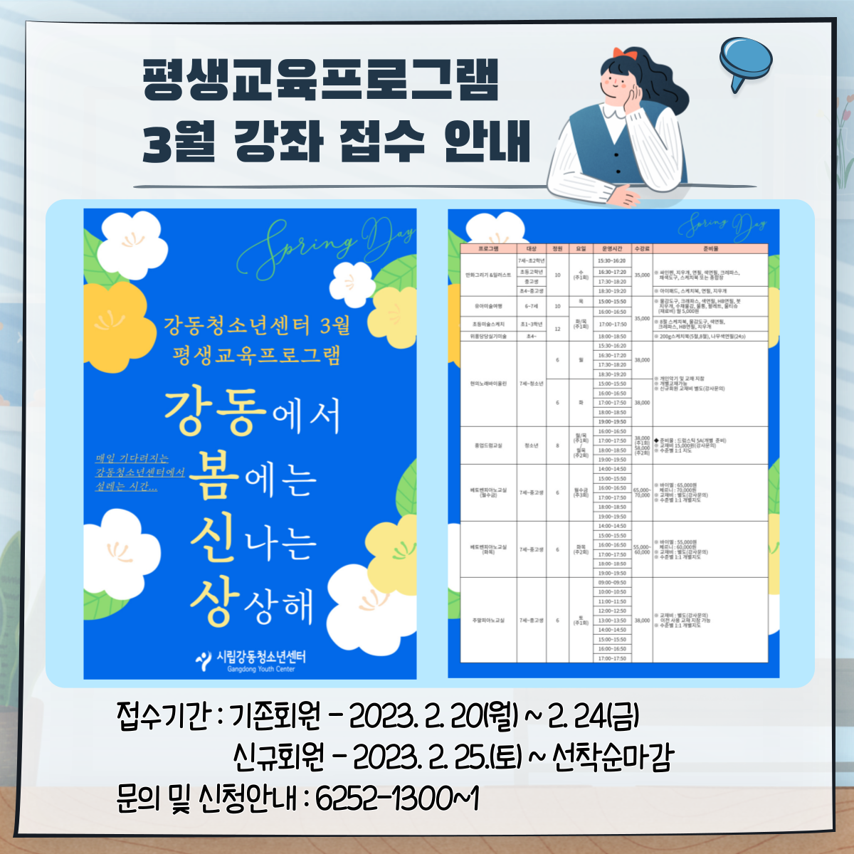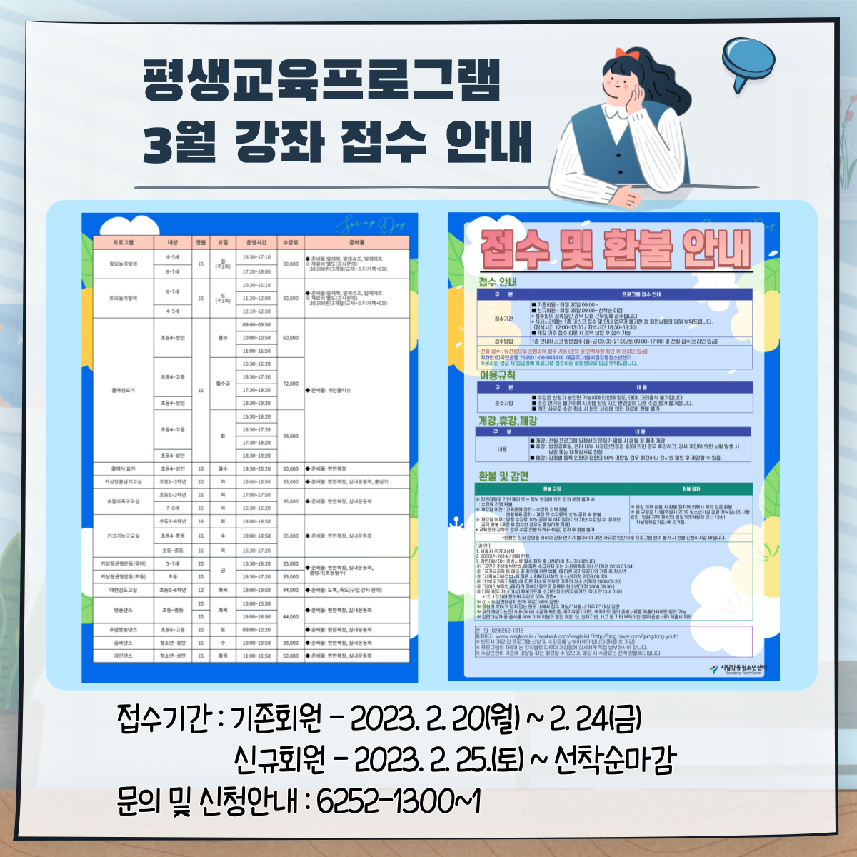| ÀÛ¼ºÀÚ : ½Ã¸³°µ¿Ã»¼Ò³â¼¾ÅÍ(wagle1300@daum.net) ÀÛ¼ºÀÏ : 2023-02-23 Á¶È¸¼ö : 512 | |||