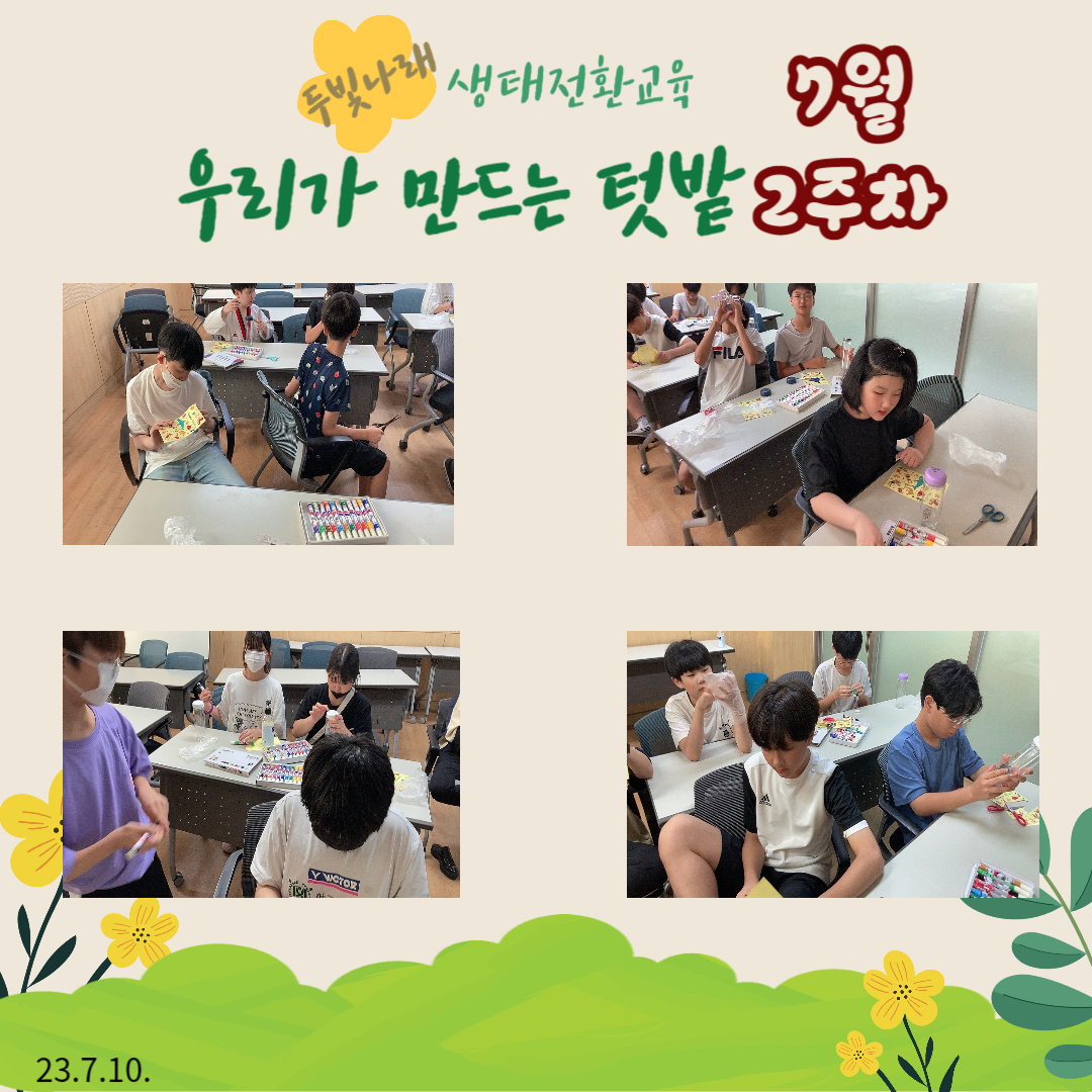 | ½Ã¸³°µ¿Ã»¼Ò³â¼¾ÅÍ 2023 û¼Ò³â¹æ°úÈľÆÄ«µ¥¹Ì 'µÎºû³ª·¡' 7¿ù 2ÁÖÂ÷ »ýÅÂÀüȯ±³À° '¿ì¸®°¡ ¸¸µå´Â ÅÔ¹ç' | |||