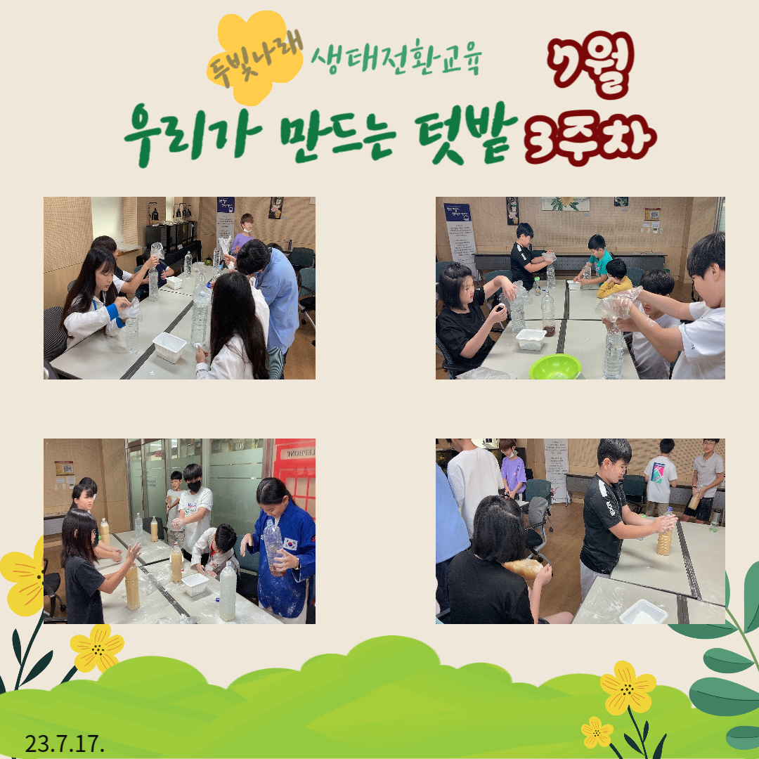 | ½Ã¸³°µ¿Ã»¼Ò³â¼¾ÅÍ 2023 û¼Ò³â¹æ°úÈľÆÄ«µ¥¹Ì 'µÎºû³ª·¡' 7¿ù 3ÁÖÂ÷ »ýÅÂÀüȯ±³À° '¿ì¸®°¡ ¸¸µå´Â ÅÔ¹ç' | |||