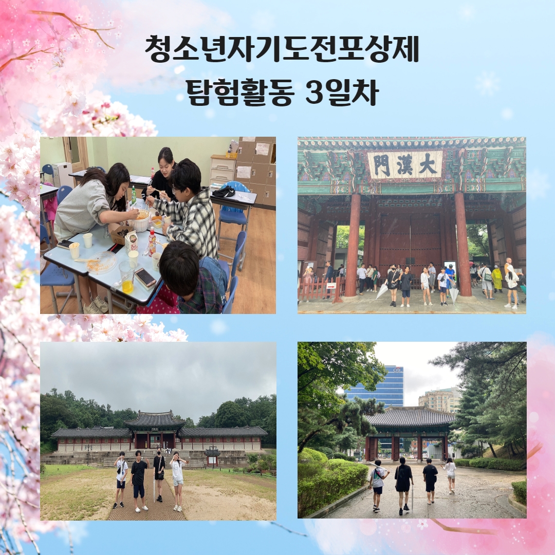 8¿ù 11ÀÏ¿¡´Â ±ÝÀå/ÀºÀå/µ¿Àå û¼Ò³âµé ¸ðµÎ¿Í ÇÔ²² °æº¹±Ã¿¡ °¡¼ ÇѺ¹À» ÀÔ°í ¿ª»ç ޹æÀ» Çß½À´Ï´Ù! ÀÌÈÄ¿¡´Â ¼¾ÅÍ·Î µ¹¾Æ¿Í¼ û¼Ò³âµéÀÌ Á÷Á¢ ¿ä¸®µµ ÇØ¼ ¸Ô°í, ÆÀºôµù Ȱµ¿µµ ÇÏ¸é¼ ¼÷¹Ú Ȱµ¿À» ÁøÇàÇß½À´Ï´Ù.
