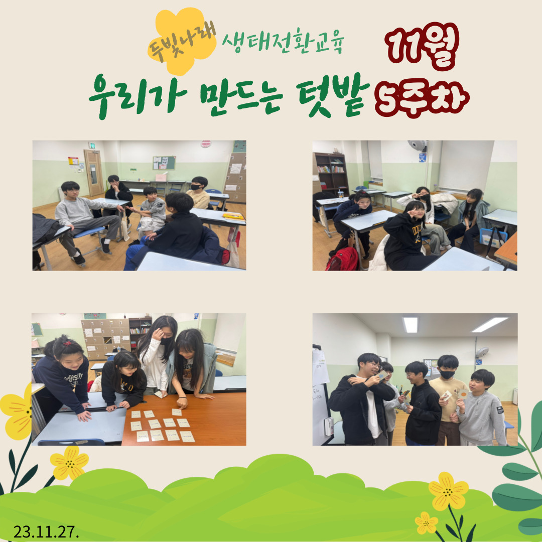 | ½Ã¸³°µ¿Ã»¼Ò³â¼¾ÅÍ 2023 û¼Ò³â¹æ°úÈľÆÄ«µ¥¹Ì 'µÎºû³ª·¡' 11¿ù 5ÁÖÂ÷ »ýÅÂÀüȯ±³À° '¿ì¸®°¡ ¸¸µå´Â ÅÔ¹ç' | |||