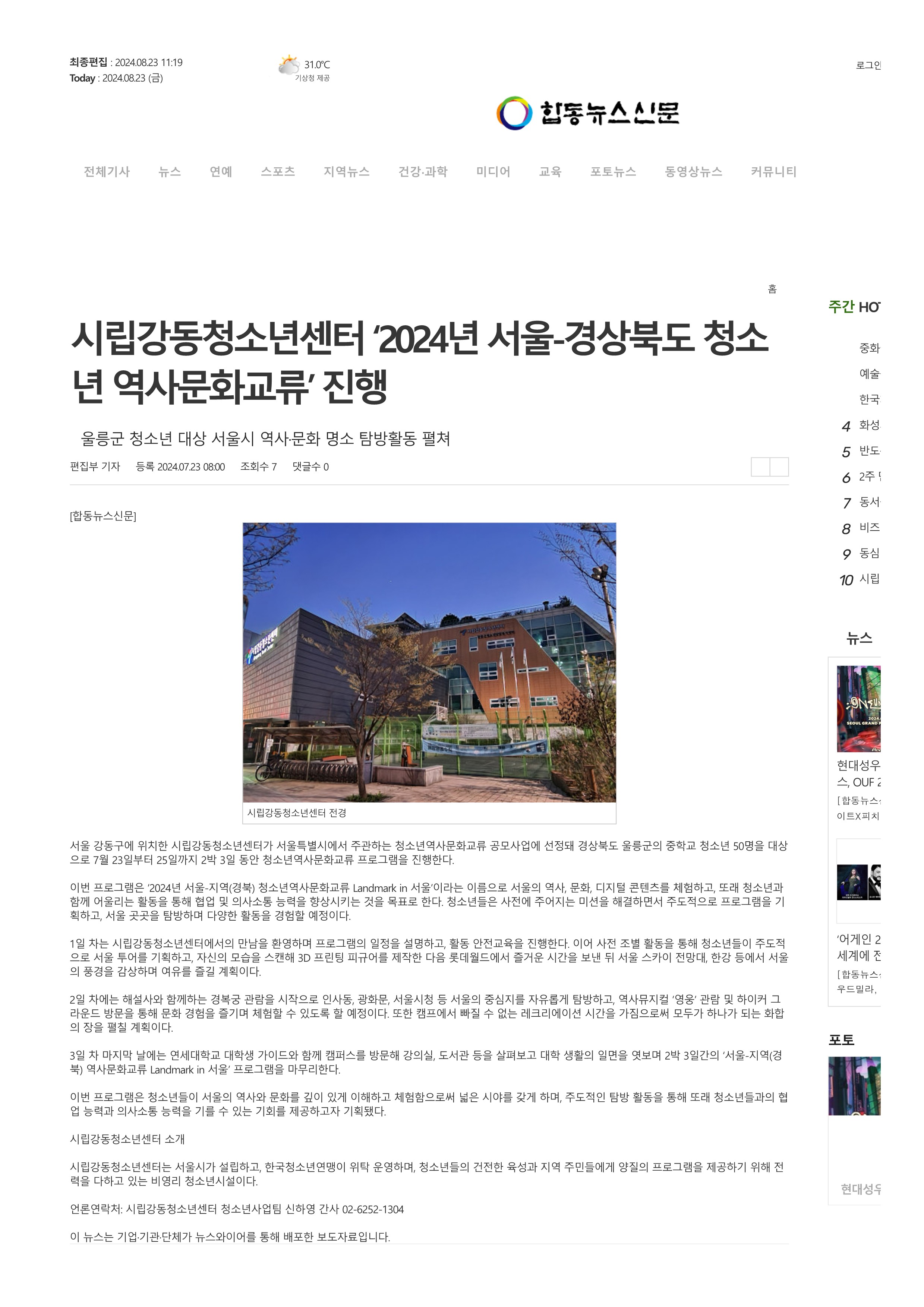 | [2024-07-23]½Ã¸³°µ¿Ã»¼Ò³â¼¾ÅÍ ¡®2024³â ¼¿ï-°æ»óºÏµµ û¼Ò³â ¿ª»ç¹®È±³·ù¡¯ ÁøÇà | ||||