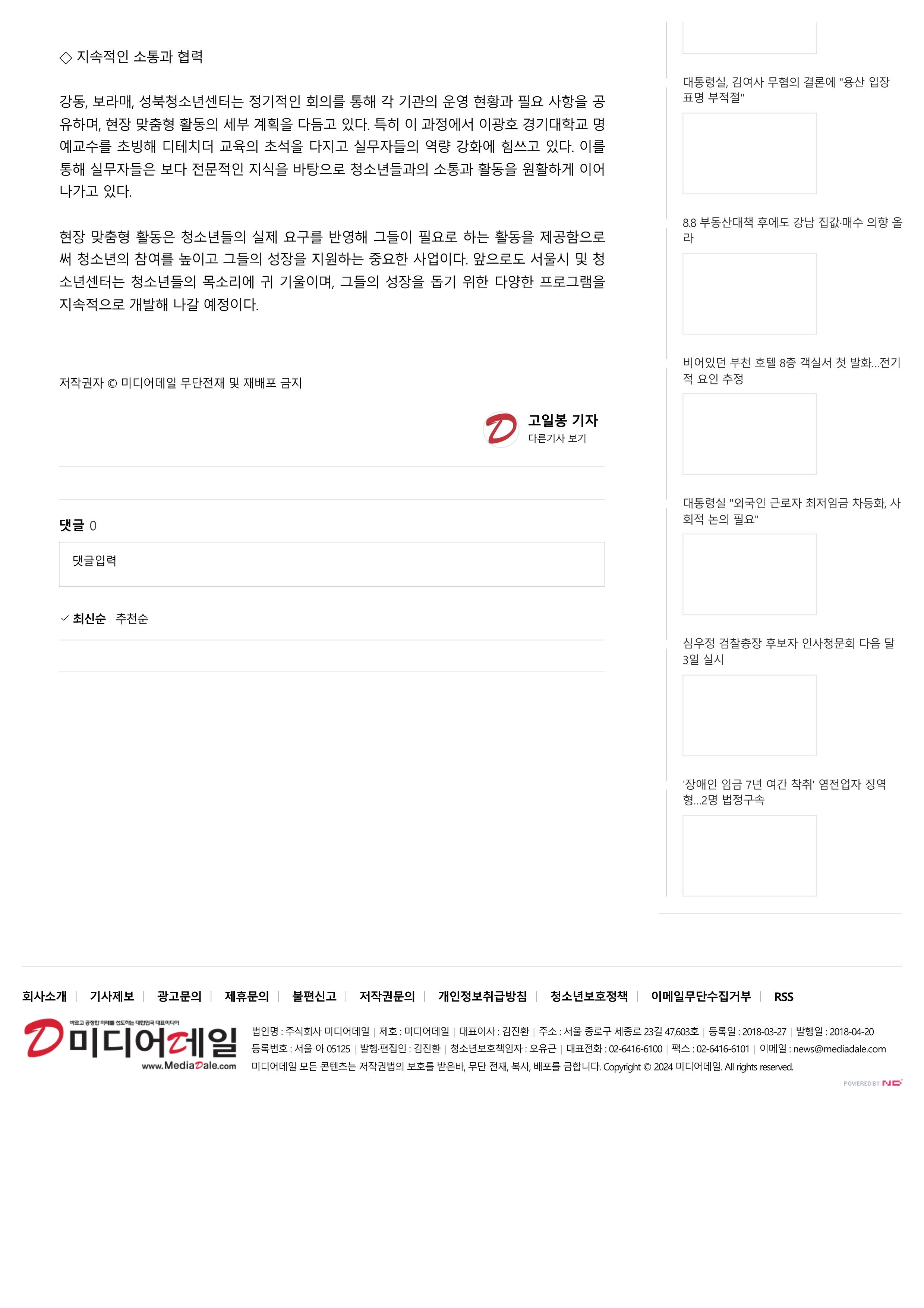 | [2024-07-26]¼¿ïÇü ÇöÀå ¸ÂÃãÇü Ȱµ¿, û¼Ò³â°úÀÇ ¼ÒÅëÀ» ÅëÇØ »õ·Î¿î ÁöÆòÀ» ¿´Ù | |||||