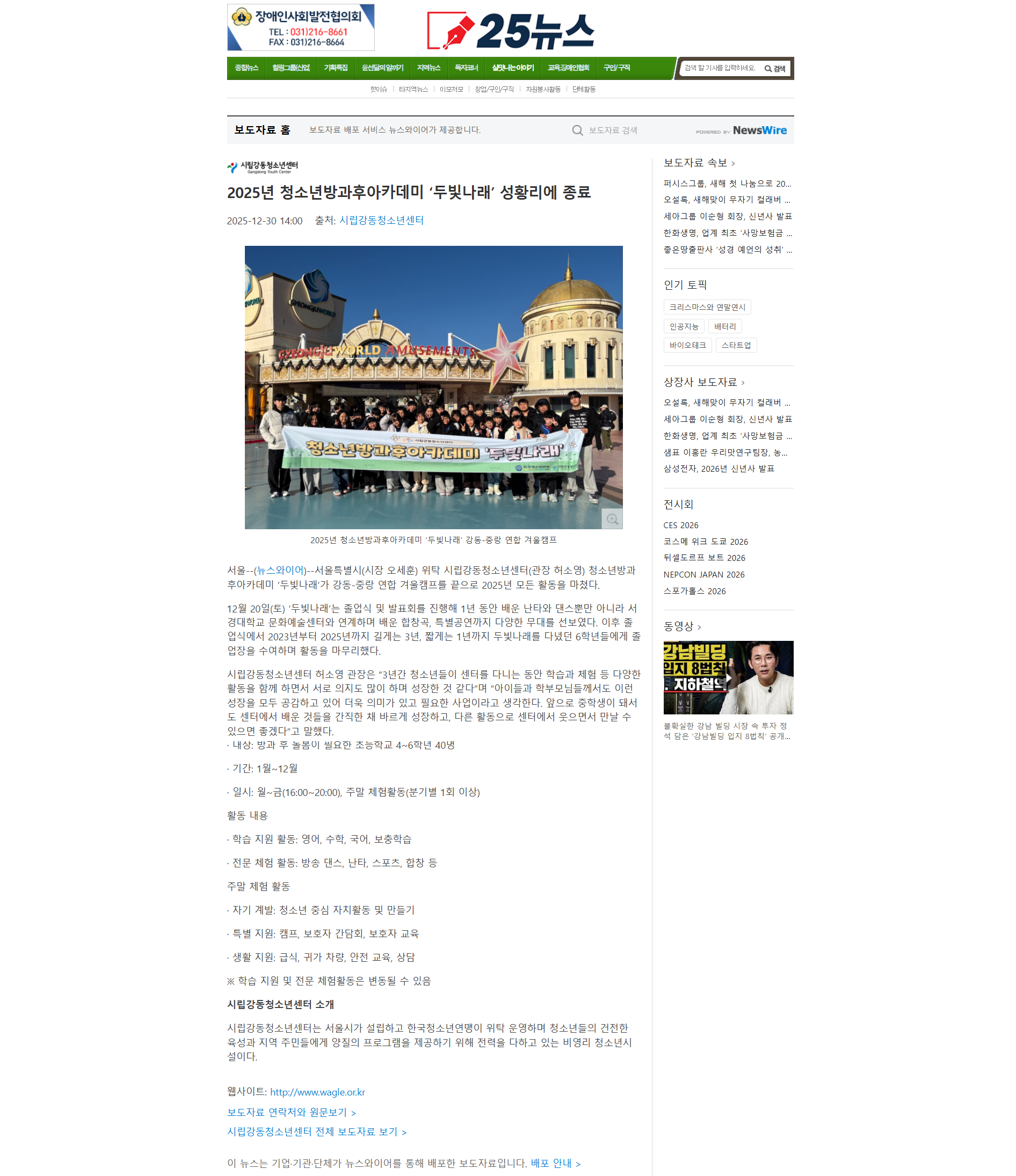| ´ÙÀ½±Û | [2025-12.16] ½Ã¸³°µ¿Ã»¼Ò³â¼¾ÅÍ ¡®2025³â ¼¿ï-Á¦Ãµ û¼Ò³â ¿ª»ç¹®È±³·ùÄ·ÇÁ¡¯ ¼º·á |