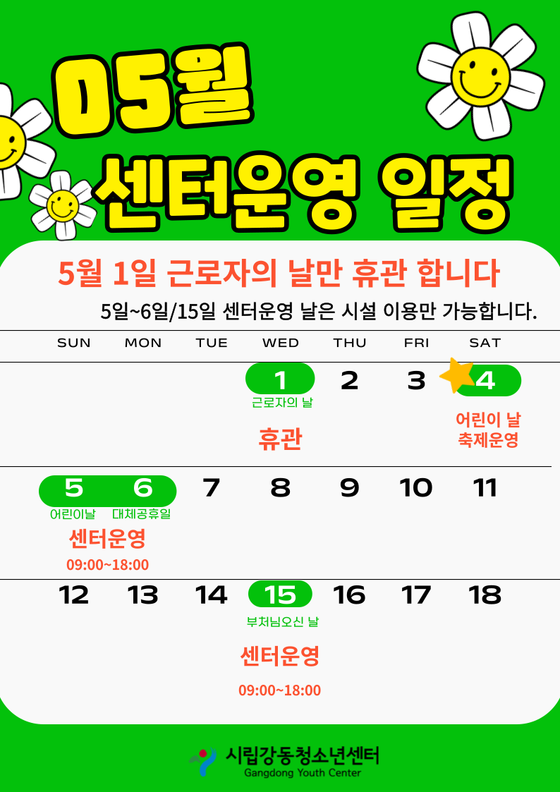 | 5¿ù °µ¿Ã»¼Ò³â¼¾ÅÍ ÀÌ¿ë¾È³» | |||