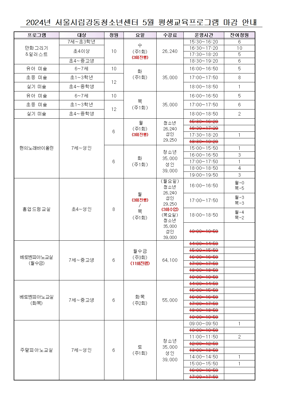 2024. 5¿ù Æò»ý±³À°ÇÁ·Î±×·¥ ¸¶°¨ÇöȲ(2024.04.24.18:00±âÁØ)