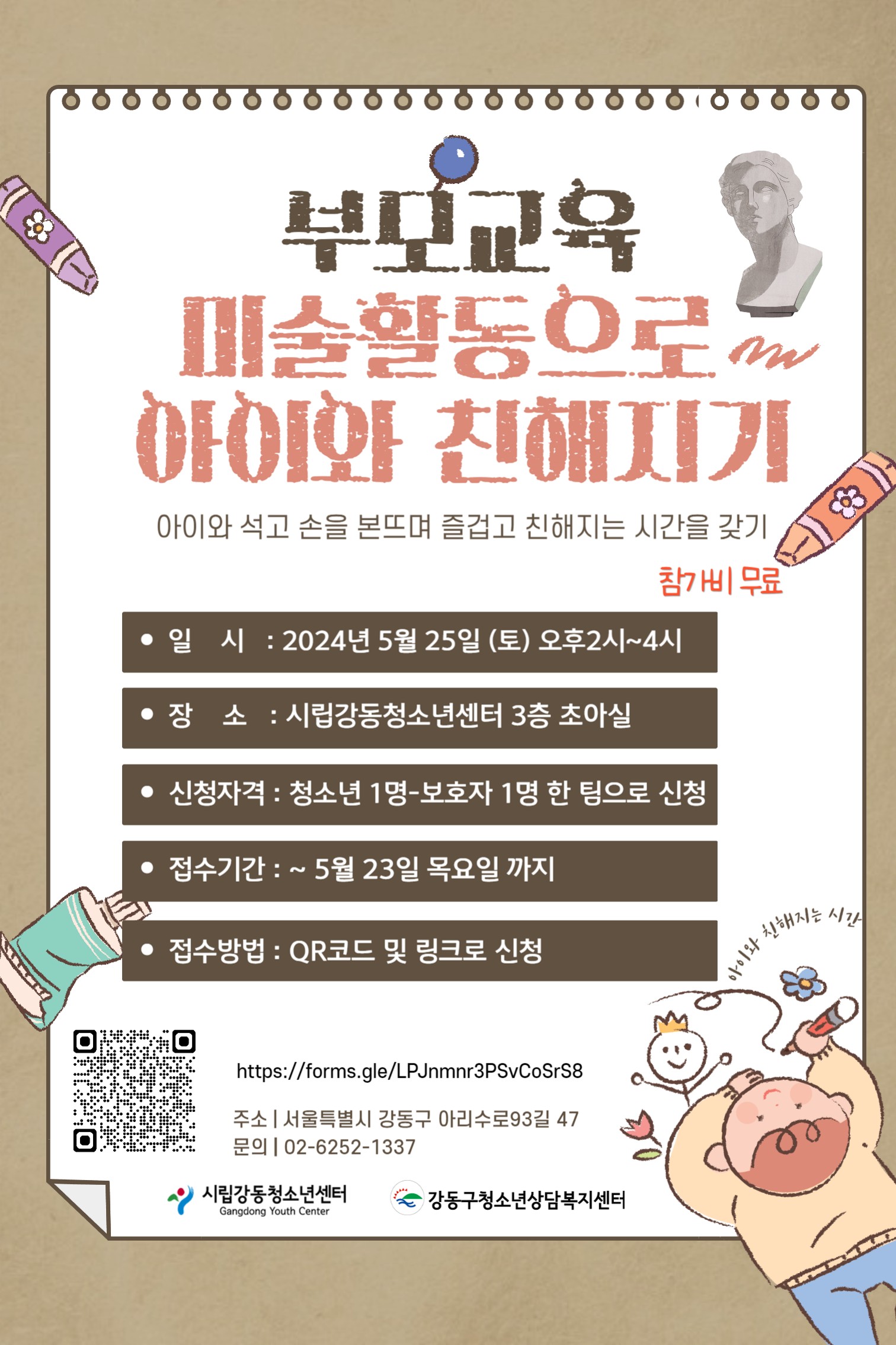 📢 2024³â ½½±â·Î¿î ºÎ¸ð¼ö¾÷ Âü°¡ÀÚ ¸ðÁý ºÎ¸ð¿Í ÀÚ³àÀÇ À¯´ë °È ¹Ì¼úÄ¡·á, ¹Ì¼úȰµ¿À¸·Î ¾ÆÀÌ¿Í Ä£ÇØÁö±â, ¼®°í ¼Õ ¸ð¾ç º» ¶ß±â µî ¾ÆÀÌ¿Í ºÎ¸ð´ÔÀÌ ÇÔ²² ¹Ì¼úÀÛ¾÷À» ÅëÇÏ¿© ÀÚ¿¬½º·´°Ô ´ëÈ ÇÒ ¼ö ÀÖ´Â ±âȸ¸¦ Á¦°øÇϰí ÁÖ¾çÀ°ÀÚ¿Í ÀÚ³àÀÇ °ü°è¸¦ Çâ»ó ½ÃŰ´Â ÇÁ·Î±×·¥¿¡ Àû±ØÀûÀ¸·Î Âü¿© ÇÒ °¡Á·À» ã½À´Ï´Ù! ¢º ½Åû±â°£: 5.23.(¸ñ)±îÁö ¼±Âø¼ø ¸¶°¨