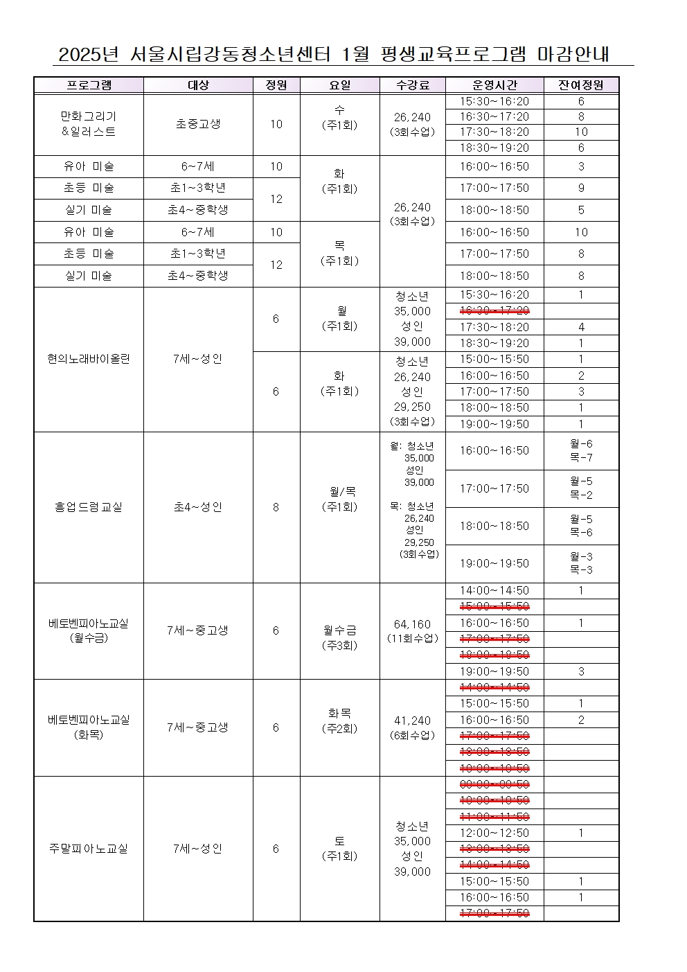 1¿ù 2ÀÏ 18½Ã ±âÁØÀ¸·Î ±âÁ¸È¸¿ø Á¢¼ö¸¦ ¸¶°¨ÇÏ¿´½À´Ï´Ù. ¡Ú2025³â 1¿ù Æò»ý±³À°ÇÁ·Î±×·¥ ½Å±Ôȸ¿ø °ÁÂÁ¢¼ö´Â 1¿ù3ÀÏ(±Ý) ¿ÀÀü9½Ã(¹æ¹®Á¢¼ö¸¸ °¡´É)ºÎÅÍ ½ÃÀÛÇÕ´Ï´Ù.¡Ú ÇÁ·Î±×·¥ ȸ¿ø ½Å±Ô Á¢¼ö´Â ¼±Âø¼øÀ¸·Î ÁøÇàµÇ¸ç ¹æ¹® Á¢¼ö½Ã ¼ø¹ø¿¡ µû¶ó Á¢¼ö¸¦ ½ÃÀÛÇÕ´Ï´Ù. °Á º° ÀÜ¿© ÀοøÀ» È®ÀÎÇϽðí, 1/3(±Ý) ¼¾ÅÍ¿¡ Á÷Á¢ ¹æ¹®(ÀÎÅÍ³Ý Á¢¼ö ºÒ°¡) ÇÏ¿© Áֽñ⠹ٶø´Ï´Ù.