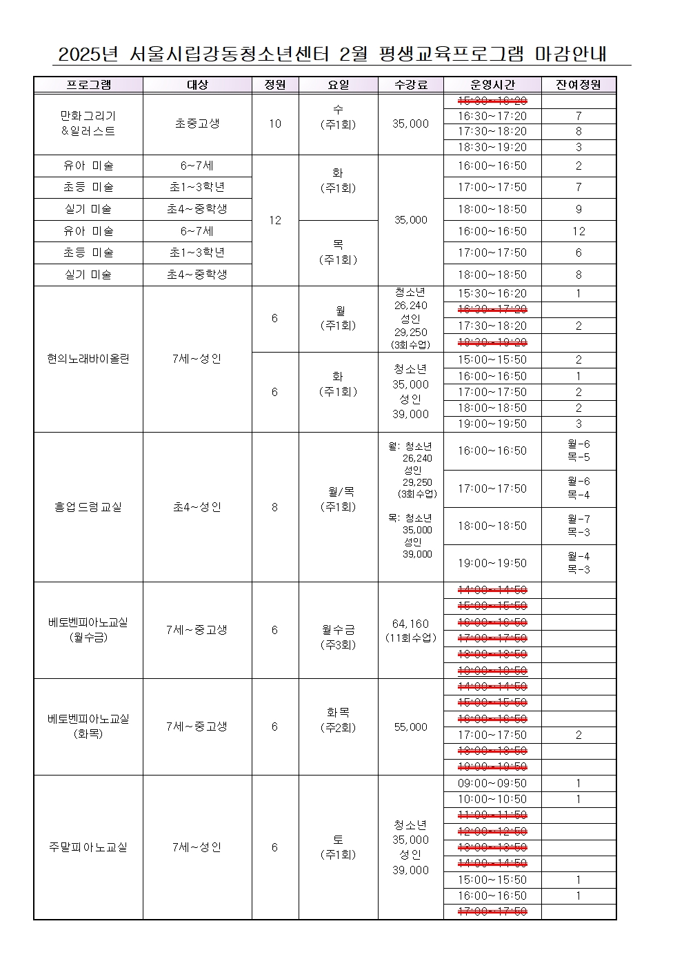 1¿ù 24ÀÏ 18½Ã ±âÁØÀ¸·Î ±âÁ¸È¸¿ø Á¢¼ö¸¦ ¸¶°¨ÇÏ¿´½À´Ï´Ù. ¡Ú2025³â 2¿ù Æò»ý±³À°ÇÁ·Î±×·¥ ½Å±Ôȸ¿ø °ÁÂÁ¢¼ö´Â 1¿ù 25ÀÏ(Åä) ¿ÀÀü9½Ã(ÀÎÅÍ³Ý Á¢¼ö, ¹æ¹®Á¢¼ö µ¿ÀÏ)ºÎÅÍ ½ÃÀÛÇÕ´Ï´Ù.¡Ú ÇÁ·Î±×·¥ ȸ¿ø ½Å±Ô Á¢¼ö´Â ¼±Âø¼øÀ¸·Î ÁøÇàµÇ¸ç ¹æ¹® Á¢¼ö½Ã ¼ø¹ø¿¡ µû¶ó Á¢¼ö¸¦ ½ÃÀÛÇÕ´Ï´Ù. °Á º° ÀÜ¿© ÀοøÀ» È®ÀÎÇϽðí, 1/25(Åä) ÀÎÅÍ³Ý Á¢¼ö ¶Ç´Â ¼¾ÅÍ¿¡ Á÷Á¢ ¹æ¹® ÇÏ¿© Áֽñ⠹ٶø´Ï´Ù. ½Å±Ôȸ¿ø Á¢¼öÀÏ¿¡´Â ÇöÀå Á¢¼ö¿Í ÀÎÅÍ³Ý Á¢¼ö°¡ µ¿½Ã¿¡ ÁøÇàµË´Ï´Ù. ¡Ú¼ö°ÀÚ¸í(¾ÆÀÌÀ̸§)À¸·Î ÀÎÅÍ³Ý È¸¿ø °¡ÀÔÀ» ¸ÕÀú ÁøÇàÇØ Áֽñ⠹ٶø´Ï´Ù.(¿¬¶ôó´Â ºÎ¸ð´Ô ¹øÈ£·Î ±âÀç)¡Ú ¼¾ÅͰ¡ óÀ½À̽нűÔȸ¿øÀº ¼ø¼ ±â´Ù¸®½Ã´Â µ¿¾È ½Å±Ôȸ¿ø ½Åû¼¿Í ÀÎÅÍ³Ý È¸¿ø °¡ÀÔÀ» µ¿½Ã¿¡ ÁøÇàÇØÁֽðí, ¹øÈ£Ç¥¿Í ÇÔ²² ¾È³»µ¥½ºÅ©¿¡ ÀÎÅͳÝÀ¸·Î °¡ÀÔÇÏ¿´´Ù°í ¸»¾¸ Àü´ÞÇØÁÖ½Ã±æ ¹Ù¶ø´Ï´Ù. ÁÖÀÇ»çÇ×!!!! -¹øÈ£Ç¥ ¼ö·É ÈÄ ´ë±âÇϸé¼, ÀÎÅÍ³Ý È¸¿ø°¡ÀÔ ÈÄ ÀÎÅÍ³Ý Á¢¼ÓÇϼż ¼ö°µî·ÏÀ» 9½ÃºÎÅÍ ÁøÇàÇϵµ·Ï ±Ç°íÇÕ´Ï´Ù. ¿ÀÀü9½Ã¿¡ ÇöÀå°ú ÀÎÅͳݿ¡¼ µ¿½Ã Á¢¼ÓÀÌ °¡´ÉÇϱ⠶§¹®¿¡, ÇöÀåµî·ÏÀÌ ¿ì¼±ÀÌ ¾Æ´Ñ °áÁ¦ ¼ø¼´ë·Î ÁøÇàÀÌ µË´Ï´Ù. (ÇöÀå¿¡¼ °Á µî·ÏÁß¿¡¶óµµ ÀÎÅͳݿ¡¼ ÁøÇàÇÏ´Â ºÐÀÌ ¸ÕÀú °áÁ¦°¡ ÁøÇàµÉ ¼ö ÀÖ½À´Ï´Ù.) ¡Úȸ¿ø(½Å±Ô ¹× ±âÁ¸). (ÇØ´çÀÚ-->¼¿ï½Ã ÁÖ¼ÒÁö·Î µî·ÏµÇ¾î ÀÖ´Â ¸¸9¼¼~24¼¼ û¼Ò³â) -´ÙµÕÀÌÄ«µå ¼ÒÁöÀÚ: ½Ç¹° ÇÃ¶ó½ºÆ½ Ä«µå ¶Ç´Â ´ÙµÕÀÌ ¾ÛÄ«µå(¼¿ïÁö°©) + ½Å±Ôȸ¿øÀº ÃÖ±Ù ÇÑ´ÞÀ̳» ¹ß±ÞÇÑ Áֹεî·Ïµîº» ÁöÂü -¼ö±ÞÀÚ: ¼ö±ÞÀÚ¼·ù + ½Å±Ôȸ¿øÀº ÃÖ±Ù ÇÑ´ÞÀ̳» ¹ß±ÞÇÑ Áֹεî·Ïµîº» ÁöÂü ²À ÁöÂüÇÏ½Ã°í ¹æ¹®ÇÏ¿© ÁֽʽÿÀ.