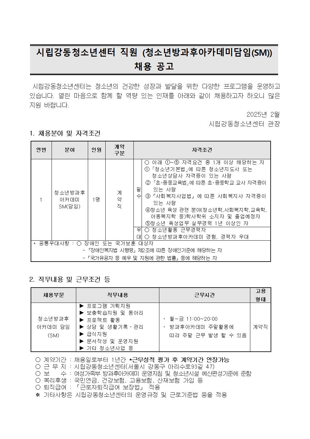 | [±¸ÀÎ]½Ã¸³°µ¿Ã»¼Ò³â¼¾ÅÍ Á÷¿ø(¹æ°úÈľÆÄ«µ¥¹ÌSM) ä¿ë °ø°í | |||