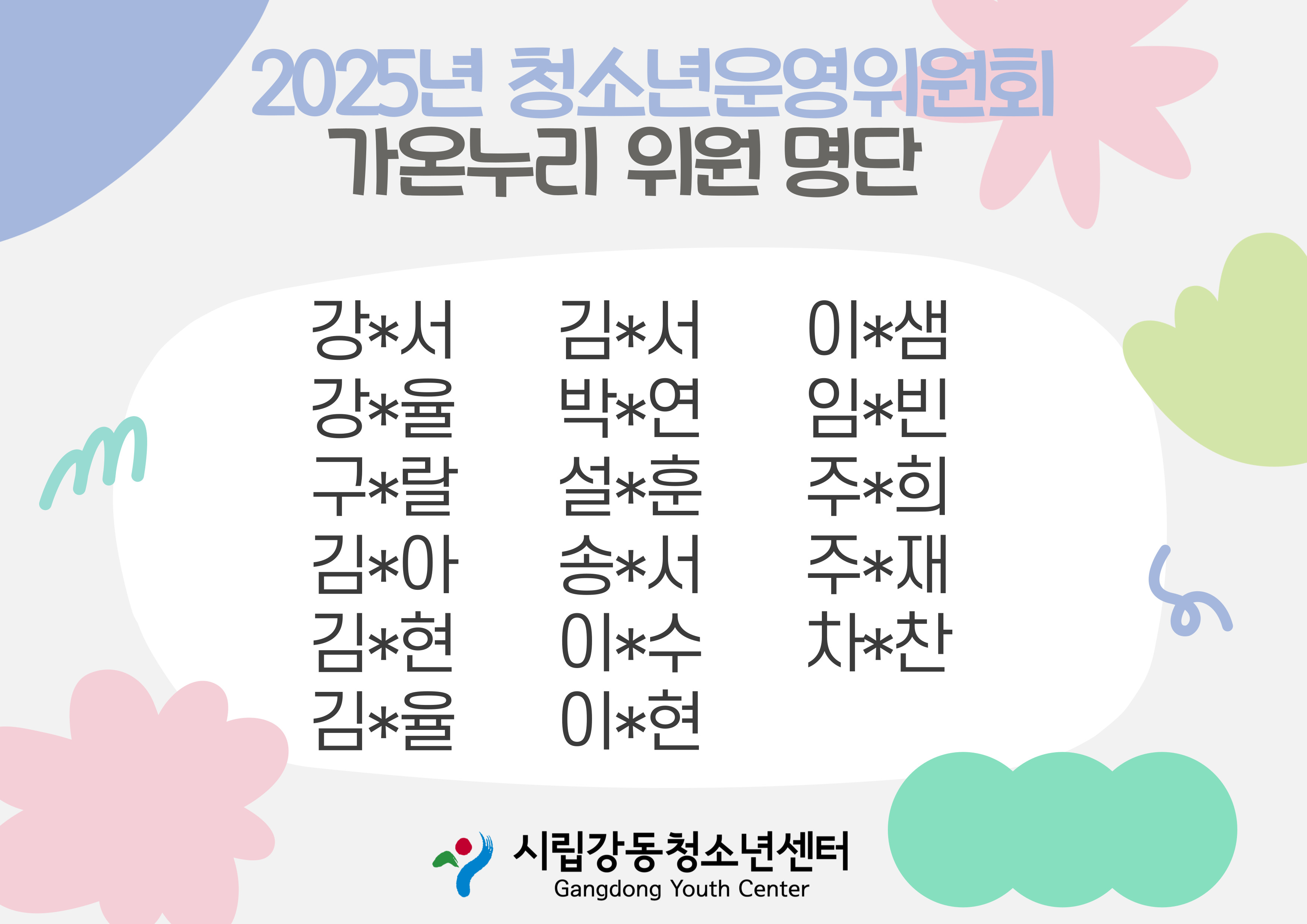 | 2025³â û¼Ò³â¿î¿µÀ§¿øÈ¸ 'û¿î´©¸®' À§¿ø ¸í´Ü ¾È³» | |||