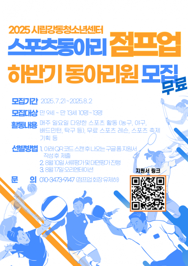 | 2025 û¼Ò³â½ºÆ÷Ã÷µ¿¾Æ¸® Á¡ÇÁ¾÷ (ÀÏ¿äÀϹÝ) 2±â ÇϹݱâ ȸ¿ø¸ðÁý | |||