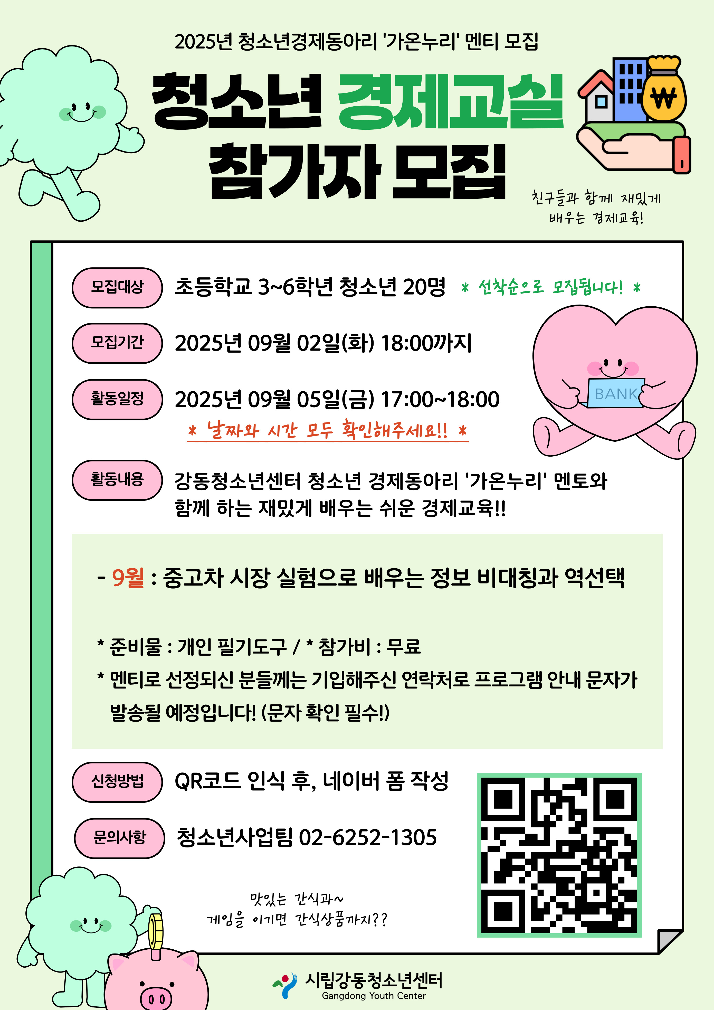 [ 💰2025³â 9¿ù û¼Ò³â °æÁ¦±³½Ç Âü°¡ÀÚ ¸ðÁý 📝 ]