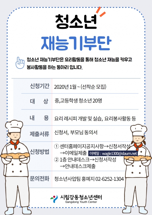 | ÀÛ¼ºÀÚ : ½Ã¸³°µ¿Ã»¼Ò³â¼¾ÅÍ(wagle1300@daum.net) ÀÛ¼ºÀÏ : 2020-01-11 Á¶È¸¼ö : 9201 | |||