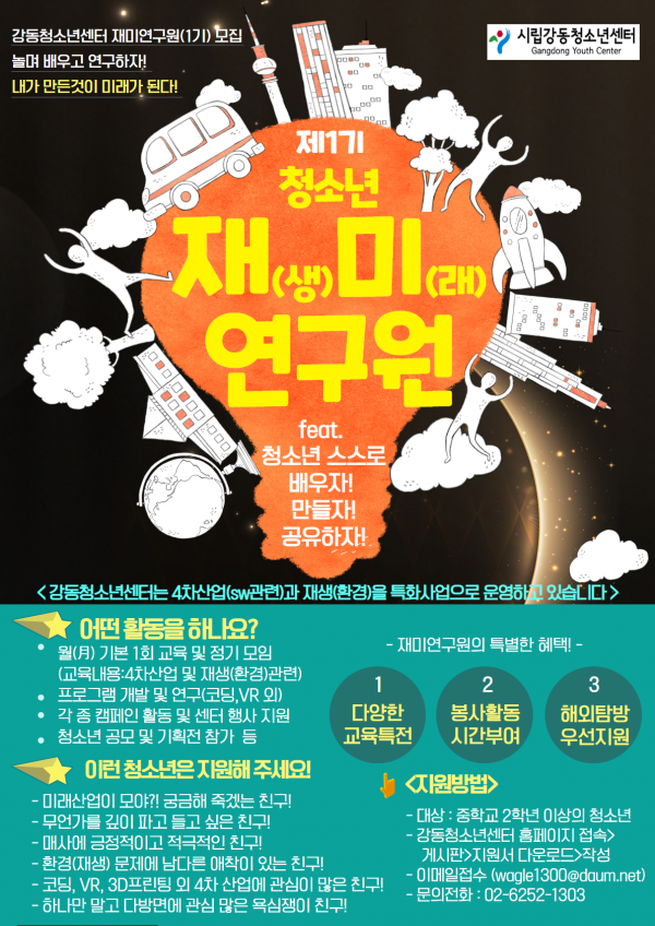 | ¹Ì·¡ÀÎÀç¾ç¼ºµ¿¾Æ¸® Àç¹Ì¿¬±¸¿ø 1±â¸¦ ¸ðÁýÇÕ´Ï´Ù!(~7/3±îÁö Ãß°¡5¸í¸ðÁý) | |||