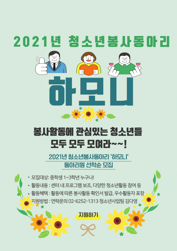 | 2021³â û¼Ò³âºÀ»çµ¿¾Æ¸® 'Çϸð´Ï' µ¿¾Æ¸®¿ø ¸ðÁý | |||
