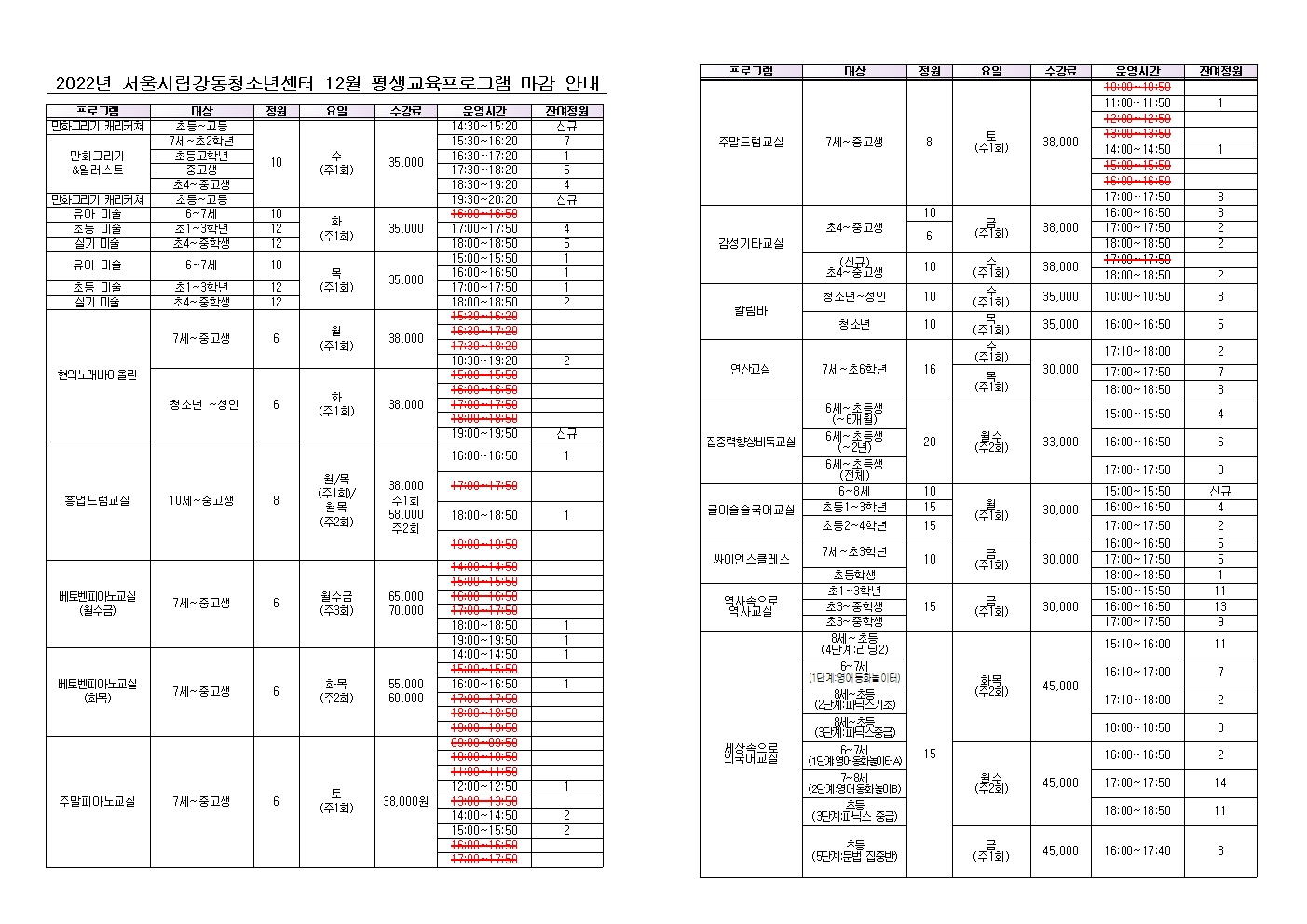 11¿ù 24ÀÏ 18½Ã ±âÁØÀ¸·Î ±âÁ¸È¸¿ø Á¢¼ö¸¦ ¸¶°¨ÇÏ¿´½À´Ï´Ù. ¡Ú 12¿ù Æò»ý±³À°ÇÁ·Î±×·¥ ½Å±Ôȸ¿ø °ÁÂÁ¢¼ö´Â 11¿ù 25ÀÏ(±Ý) ¿ÀÀü 9½Ã¿¡ ½ÃÀÛÇÕ´Ï´Ù. ¡Ú