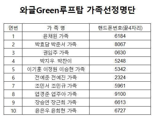 ¿Í±ÛGreen·çÇÁž¿¡ ½ÅÃ»ÇØ ÁֽЏðµç ºÐµé²² °¨»çµå¸³´Ï´Ù. ÃÑ 31°¡Á·ÀÌ ½ÅÃ»ÇØ Áּ̽À´Ï´Ù. ÃÖÁ¾ 10°¡Á·ÀÌ ¼±Á¤µÇ¼ÌÀ¸¸ç, ¼±Á¤µÇ½Å °¡Á·ºÐµéÀº 3¿ù 11ÀÏ ¿À¸®¿£Å×À̼ǿ¡ Âü¼®ÇÏ¼Å¾ß ÃÖÁ¾ ¼±Á¤ÀÌ °áÁ¤µÇ¿À´Ï ²À Âü¿©ÇØ Áֽñ⠹ٶø´Ï´Ù. ÃÖÁ¾ ¼±Á¤µÇ½ÅºÐµéÁß Âü¼®ÀÌ ¾î·Á¿ì½Å ºÐµéÀº 3¿ù 7ÀϱîÁö ²À ¿¬¶ô¹Ù¶ø´Ï´Ù. ¼±Á¤µÇ½Å 10°¡Á· ¸ðµÎ ÃàÇϵ帳´Ï´Ù.