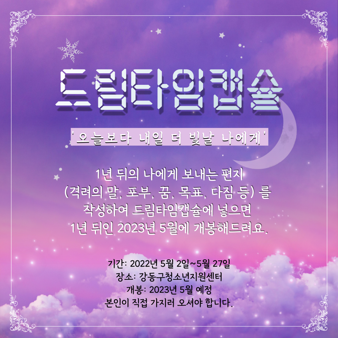 ¸ÅÀÏ ¸ÅÀÏ ¿À´ÃÀÌ Á¦ÀÏ ¹Ý¦ ¹Ý¦ ºû³ª´Â ¿ì¸® Ä£±¸µéÀÇ ³»ÀÏÀ» À§ÇØ 1³â µÚÀÇ ¿©·¯ºÐ¿¡°Ô º¸³»´Â ÆíÁö¸¦ ÀÛ¼ºÇÏ¿© µå¸²Å¸ÀÓĸ½¶¿¡ ³ÖÀ¸¸é ÀÌ Å¸ÀÓĸ½¶À» °­²ÞÀ̰¡ ¼ÒÁßÇÏ°Ô º¸°üÇÏ¿© ³»³â 5¿ù¿¡ °³ºÀÇØµå¸³´Ï´Ù!